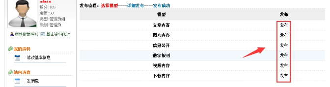 系統(tǒng)可快速找到發(fā)布入口,只要擁有該欄目的發(fā)布權限,就可以看到”發(fā)表”二字,反之,沒有權限則看不到這兩個字。