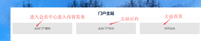 主站后臺入口(主站欄目各種設置)、主站會員中心入口(主站內容發布、審核)、