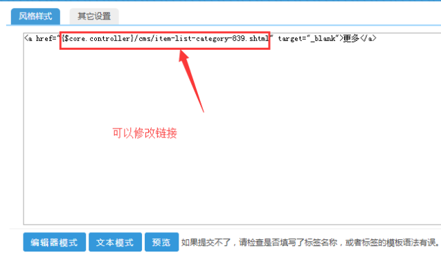 上面的文字和鏈接都可以修改,更多這個鏈接是用的最多的,他分為動態(tài)主站、動態(tài)子站、靜態(tài)主站、靜態(tài)子站的鏈接;上面的數(shù)字是欄目的ID號