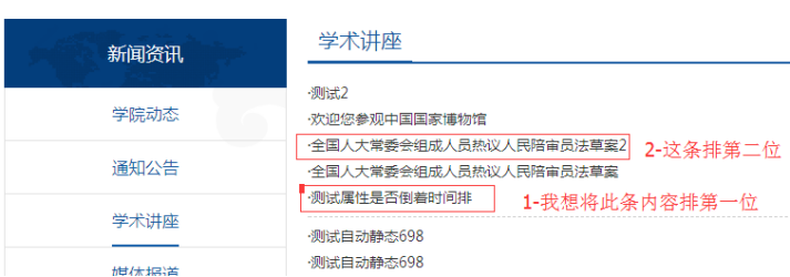 如果我們需要將一些重要的內(nèi)容,多篇內(nèi)容不按時間發(fā)布排序,而是將他根據(jù)需要置頂排序;就可以用到權(quán)重功能。比如下面這個需求