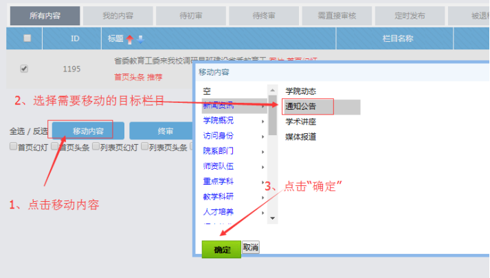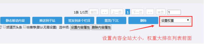 我需要將一篇或多篇內(nèi)容,一鍵移動到其他欄目;就可以用這個移動內(nèi)容按鈕。