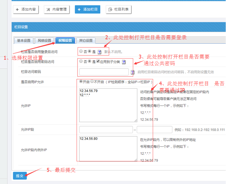 C:欄目在哪些IP段可以訪問(只有動態頁面有效)