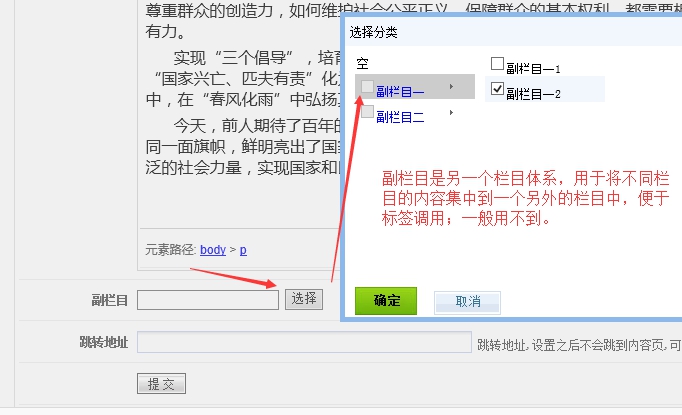 系統中還有一個欄目體系叫副欄目,就是將主欄目不同的內容匯集到一個欄目中,這樣便于標簽調用。