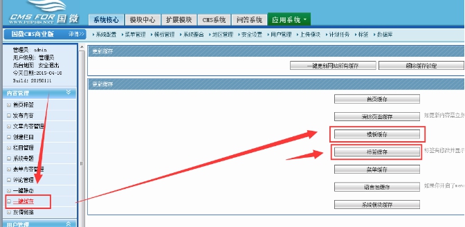 進入后臺—點擊左邊的“一鍵緩存”----點擊“標簽緩存”