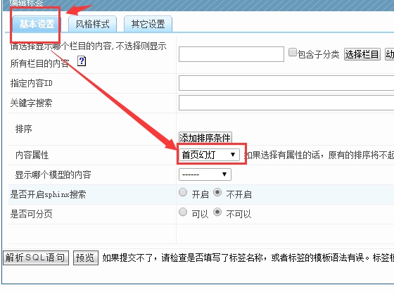 D、選擇“基本設(shè)置--------里面需要選擇“首頁幻燈片”屬性---然后提交;