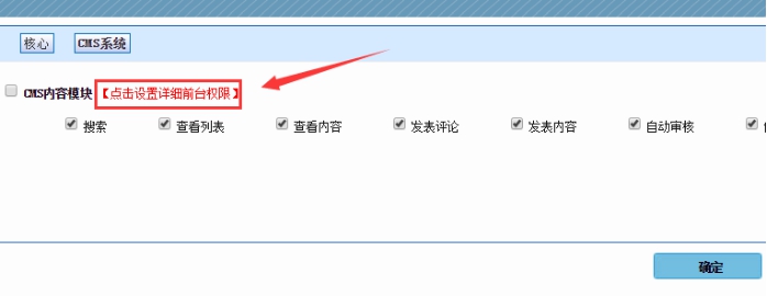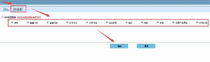 3、點擊 cms系統----然后勾選下面的所有選項------點擊確定