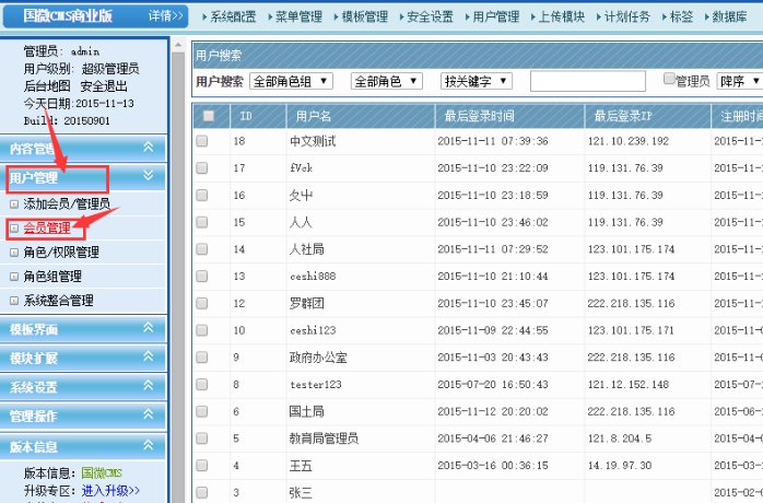 1、點擊用戶管理----會員管理