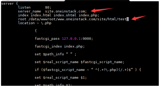 b) 編輯復制好的site.oneinstack.conf文件,修改域名以及綁定目錄