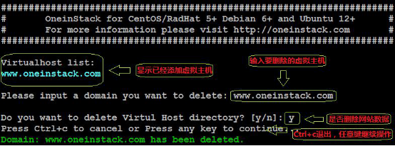 cd /root/oneinstack #必須進入 oneinstack 目錄下執行./vhost.sh del