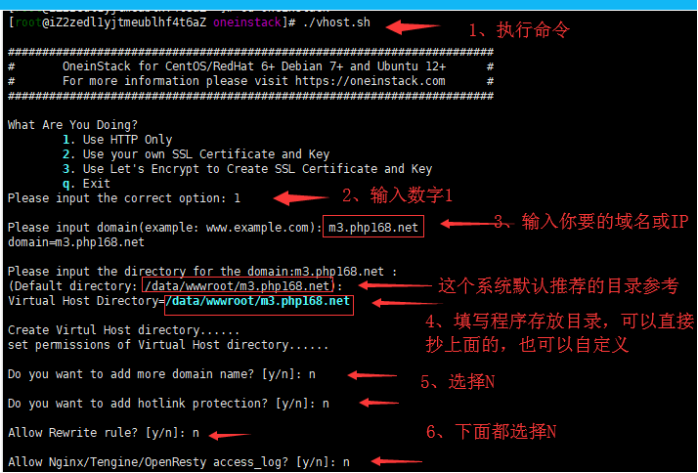 一、安裝完成環(huán)境之后進(jìn)入到oneinstack目錄下執(zhí)行vhost.sh生成域名配置文件(沒有域名填ip即可)
