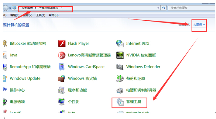 A:進入電腦控制面板------查看方式選擇 大圖標---------點擊管理工具