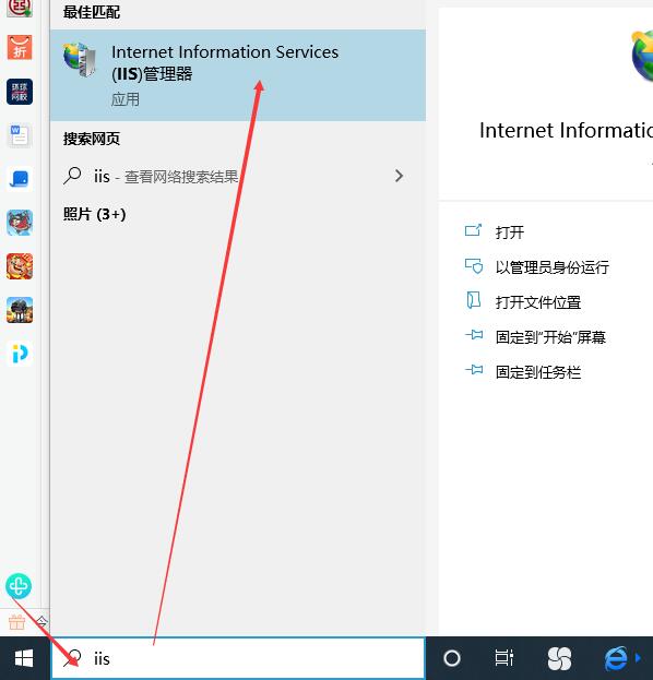 A:win10電腦的話,在搜索框輸入 iis,彈出對應IIS管理器的程序