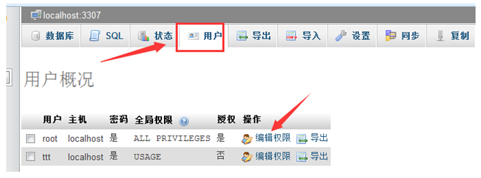 然后點擊"用戶";,進入頁面后對root的"編輯權限"按鈕 點擊下