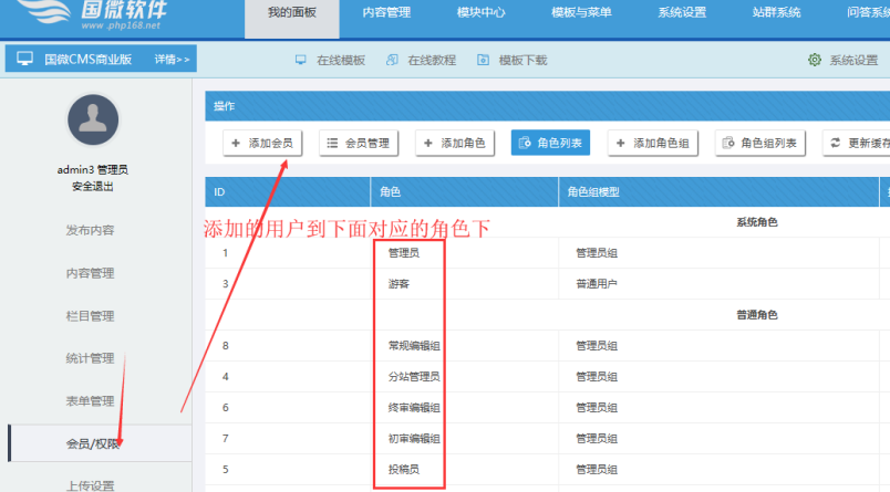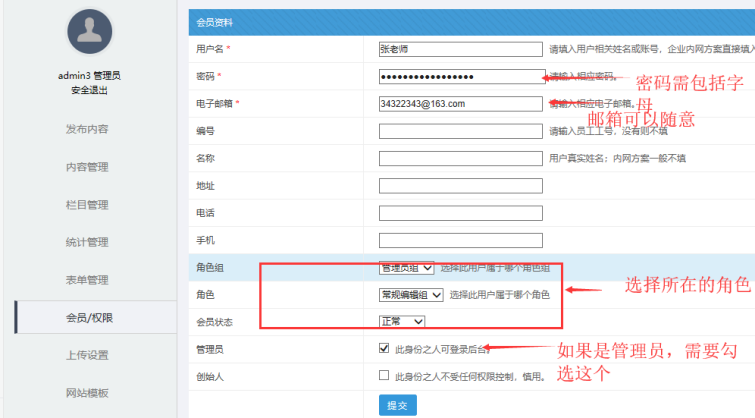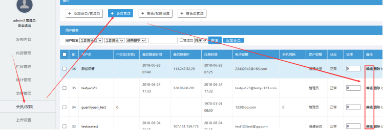 一、管理員進(jìn)入后臺(tái)-------會(huì)員/權(quán)限--------添加會(huì)員