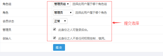 需要選擇下。如果是管理員(比如分站管理員),就需要勾選那個(gè)可以進(jìn)入后臺(tái)。