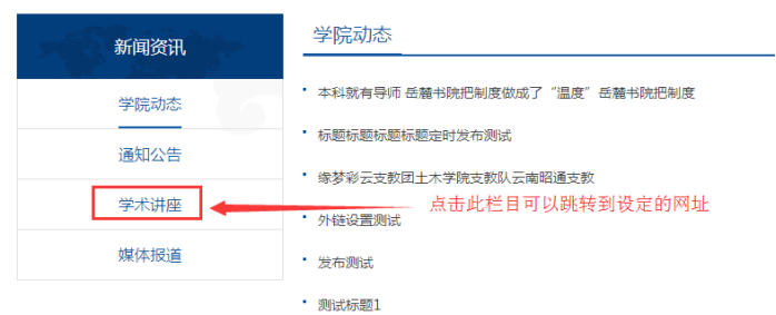 我們需要點擊左邊的欄目名稱,可以跳轉到所需的網頁地址(可以是新窗口打開或母窗口打開)