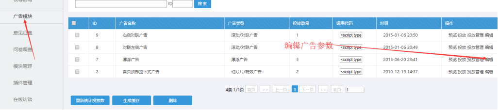 模塊中心----廣告模塊-----點擊“編輯” (以漂浮廣告為列)