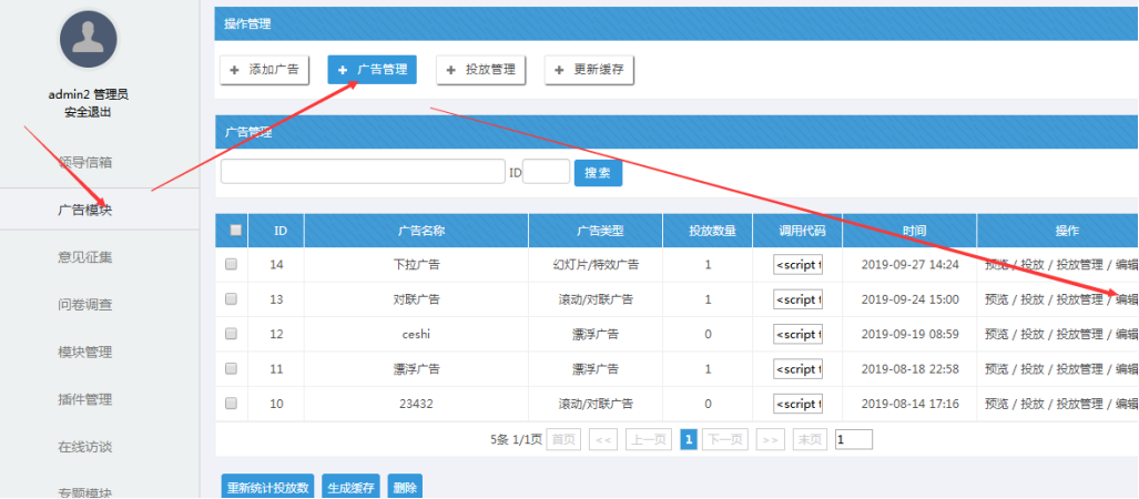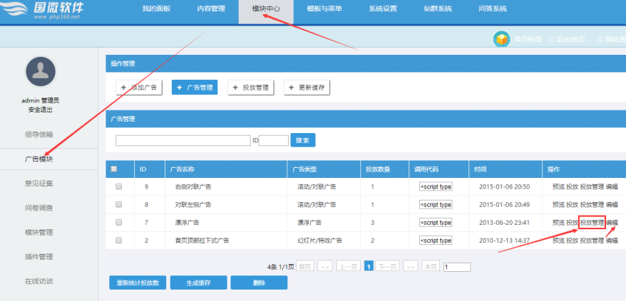 A:進入到廣告模塊: 模塊中心------廣告模塊---------廣告管理