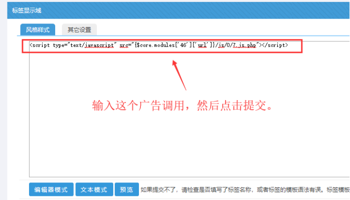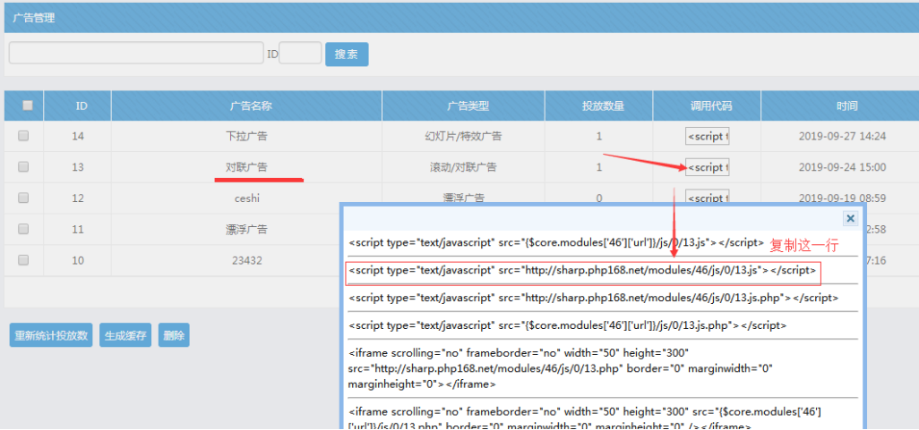 備注:這種js放置,只需要放置一次即可! 后續后臺可以開啟或關閉對應的廣告。
