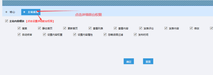 B:點擊主站系統(tǒng)--------點擊“點擊設置詳細前臺權限”