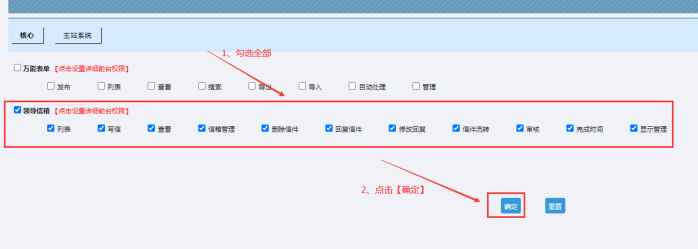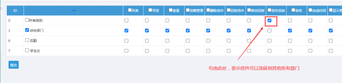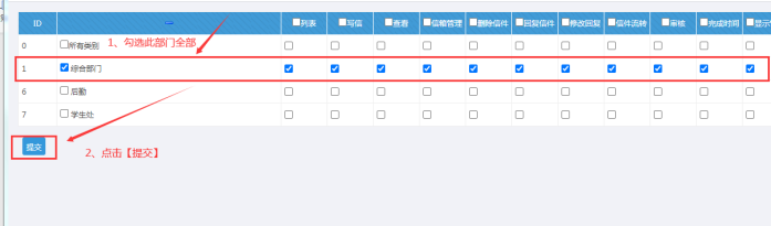 A:比如,我想此人對這個部門的信件,有管理權(quán)限,那就全部勾選--再提交
