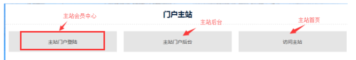 主站門戶后臺: 點擊第二個按鈕“主站門戶后臺”;