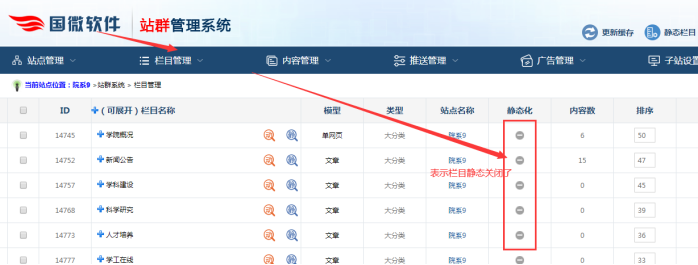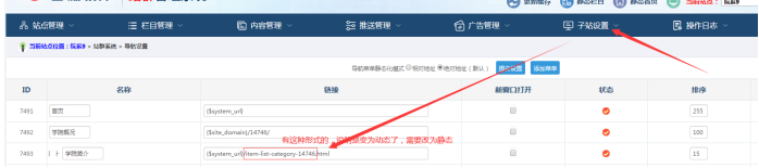 就說明是欄目靜態關閉了,開啟了動態;同時可能是菜單導航批量動態了,需要設置靜態。