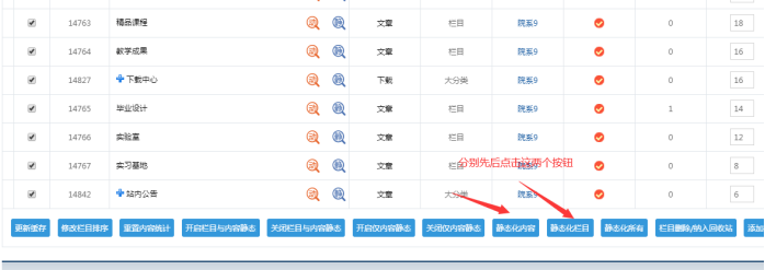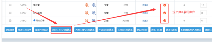 如果是這樣,就開啟靜態靜態,開啟靜態方式:點擊下面的開啟欄目和內容靜態