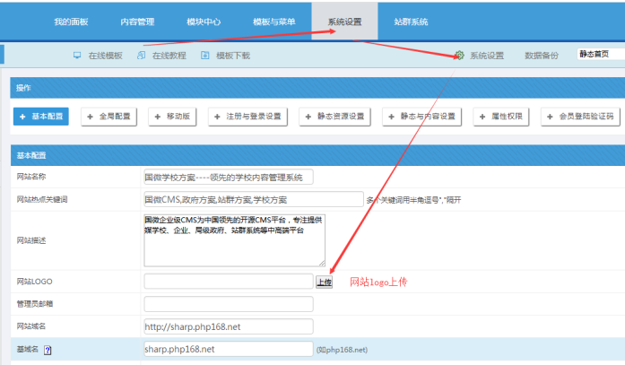網站的logo,可以此處上傳,一般傳透明的png格式;上傳后,需要更新模板緩存,靜態首頁。