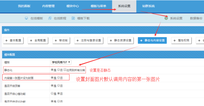 九、是否開啟靜態化全局設置;如何內容第一張圖片設置為封面