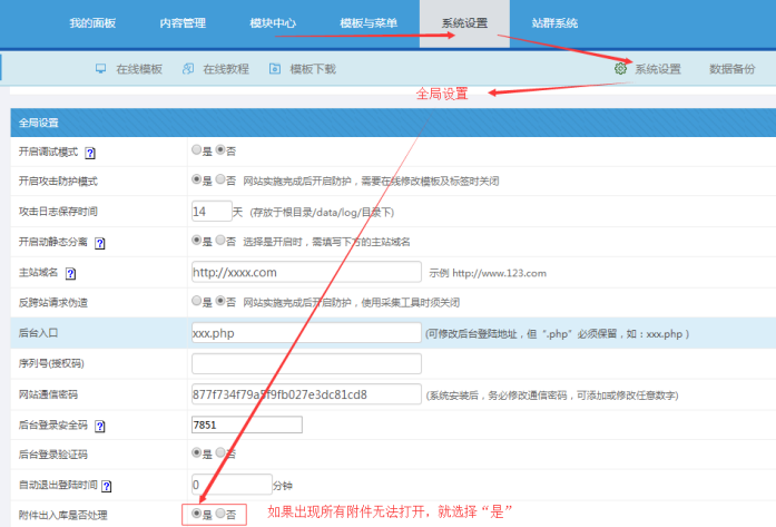 有時候突然發現所有附件地址都變了,比如“#P8_attach#”;這個時候,就可以設置下附件入庫處理“是”;然后更新全站緩存,靜態頁面即可。