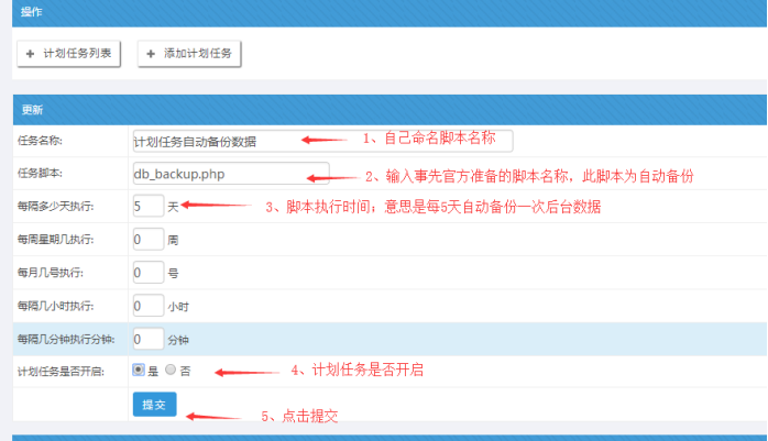 腳本代碼是: db_backup.php 一般設置5天備份一次;