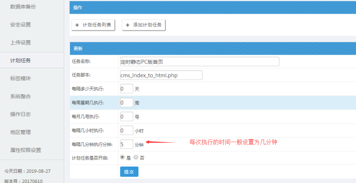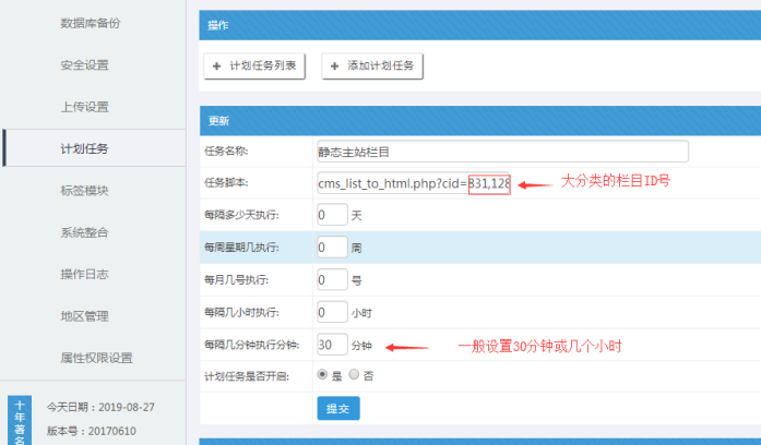 同上,也是利用計劃任務,他的作用是靜態主站大列表;因為大列表默認不自動靜態。