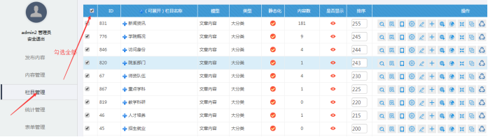 操作:欄目管理-----勾選所有欄目
