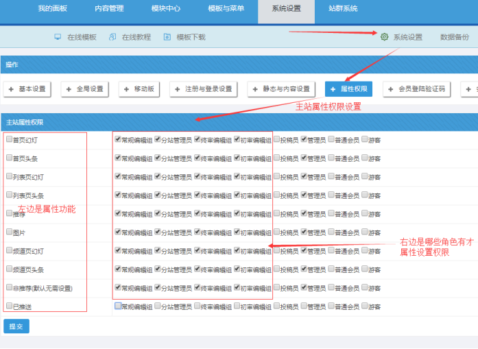 我們需要讓哪些角色可以設置屬性,比如頭條、推薦、幻燈片。那么就需要設置下這個功能。
