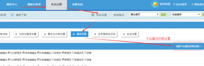 B:站群子站的屬性權限設置