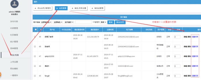 同時又可設置個人權限;讓每個人都有個性化的管理權限,比如張老師管理通知公告,李老師管理新聞資訊,他們可以是屬于同一個角色。