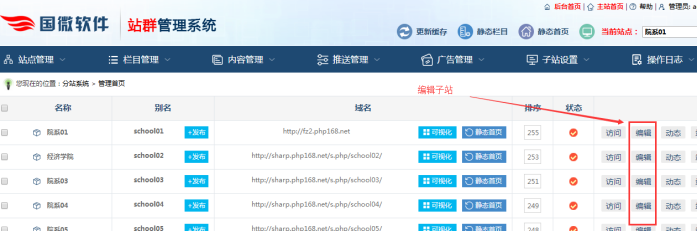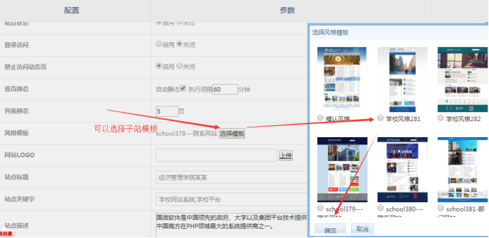 選擇站群子站模板方法;進入網站后臺---站群系統----編輯站點----選擇模板----點擊提交