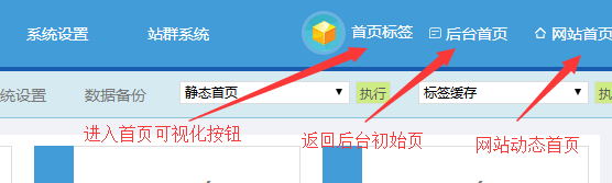 1:后臺的”首頁標簽”、”后臺首頁”和“網站首頁”快速按鈕