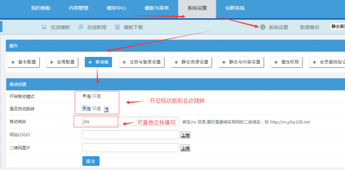 如果要開啟手機版,就按下面設置;手機版的訪問路徑為: 域名/m