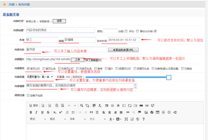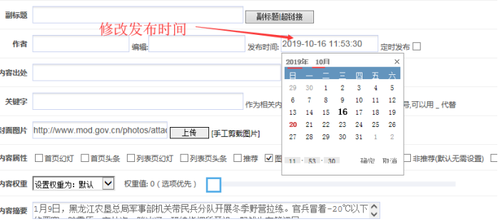 發布時間:修改需要顯示的發布時間 內容出處:就是內容的來源部門