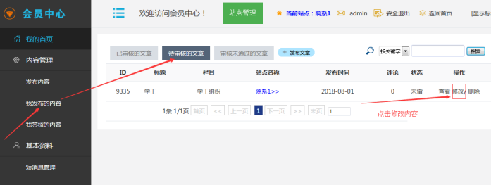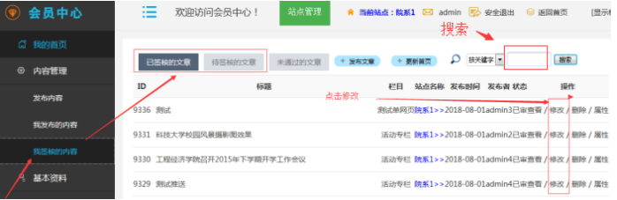 如果是管理員;進入會員中心----點擊我簽核的內容-----修改管理的內容 (可以進行內容搜索)