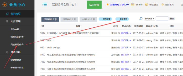 如果沒有看到內容在首頁更新,可以在會員中心, 點擊“我簽核的內容”----”更新首頁”即可