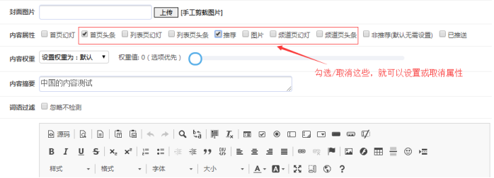 A:進入子站會員中心設置的方式: 發布或修改內容------設置對應屬性勾選-----提交即可。