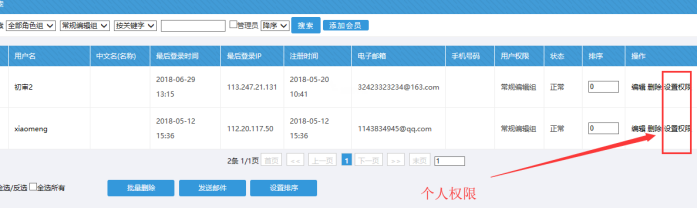 角色下,但是每人擁有不同的管理權限,可以管理不同的欄目。可以對他們的賬號進行單獨的權限設置。