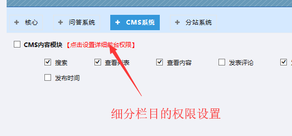 接下來就可以來設置各個欄目的細分權限了。