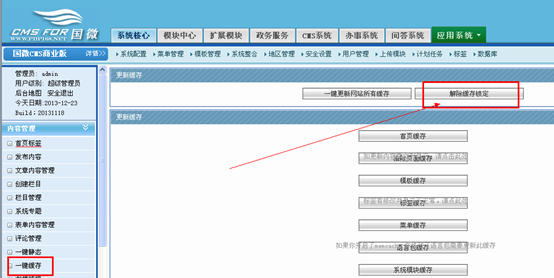 2、 緩存和靜態首頁:主要操作一鍵更新緩存和靜態首頁即可,可以讓其第一時間看到更新的內容。這里的緩存我們先只使用最簡單的一鍵緩存。