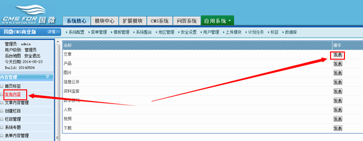 四種內容發布方式為:欄目前臺發布、內頁前臺發布、會員中心發布、后臺發布 (一般我們只使用一種或兩種)