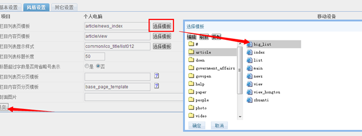 B、修改欄目模板:新聞資訊的大列表模板改為 big_list 或其他