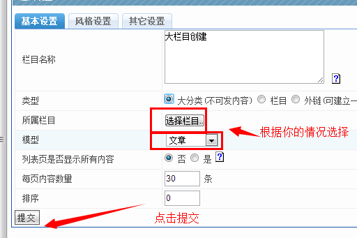 2、添加欄目